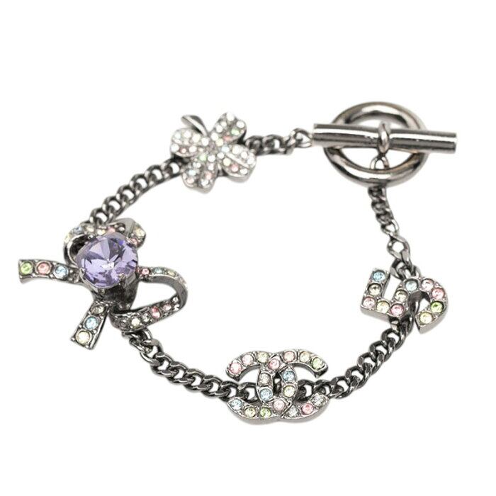 シャネル ココマーク No.5 リボン ブレスレット 05A ガンメタル メタル ラインストーン レディース CHANEL 【中古】