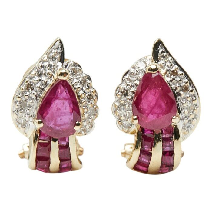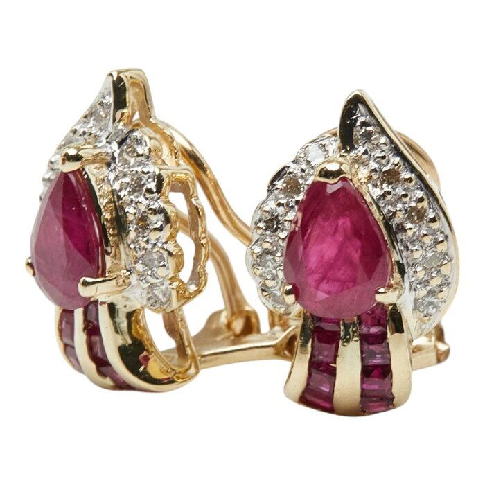 ノーブランド イヤリング K14YG イエローゴールド ルビー ダイヤモンド レディース no brand 【中古】