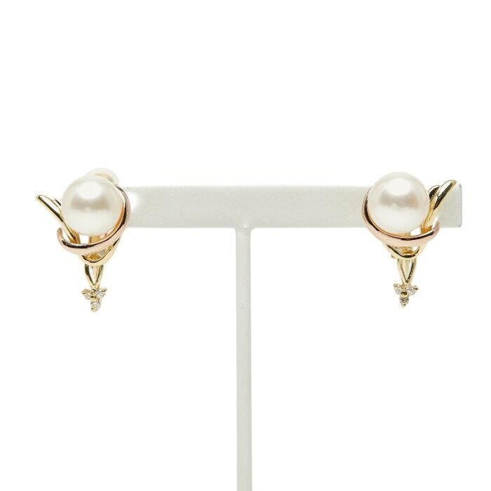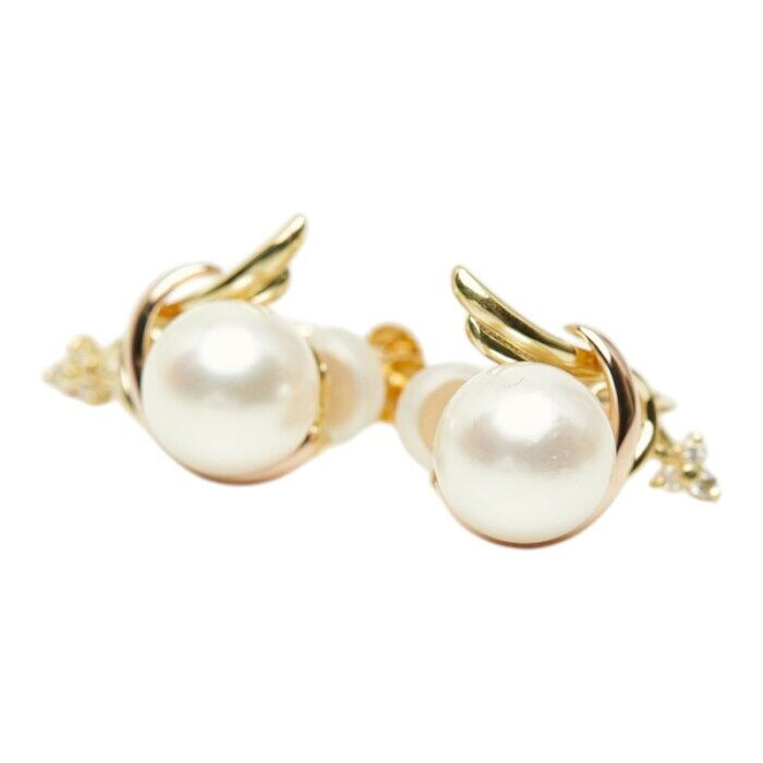 K18YG イエローゴールド K18PG ピンクゴールド アコヤパール8.1mm ダイヤ0.06ct イヤリング レディース 【中古】