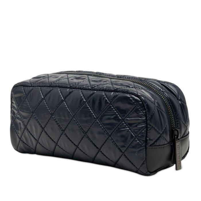 シャネル コココクーン ポーチ 小物入れ ネイビー ナイロン レザー レディース CHANEL 【中古】