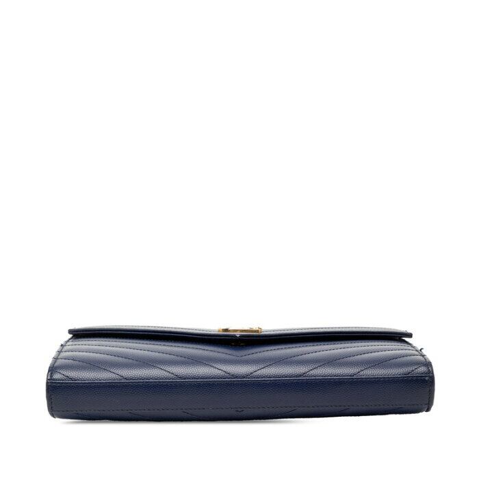 サンローラン カサンドラ 斜め掛け チェーンウォレット ショルダーバッグ 377828 ネイビー レザー レディース SAINT LAURENT 【中古】