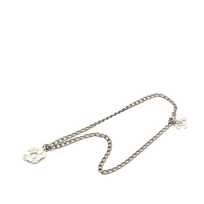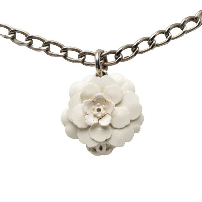 シャネル カメリア ココマーク チェーン ペンダントネックレス ホワイト シルバー メタル エナメル レディース CHANEL 【中古】