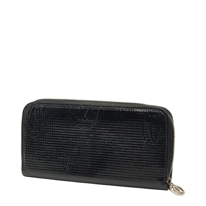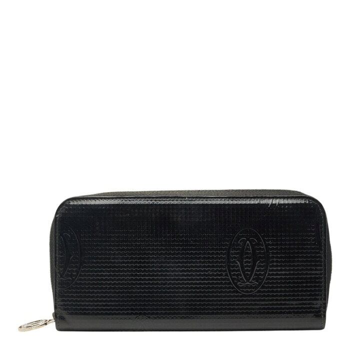 カルティエ ハッピーバースデー ラウンドファスナー 長財布 ブラック パテントレザー レディース CARTIER 【中古】