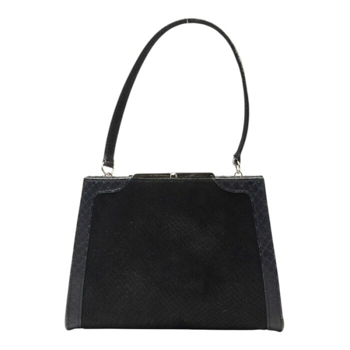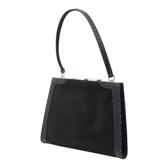 ロエベ がま口 ハンドバッグ ブラック ベロア クロコダイル レディース LOEWE 【中古】