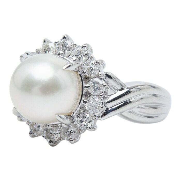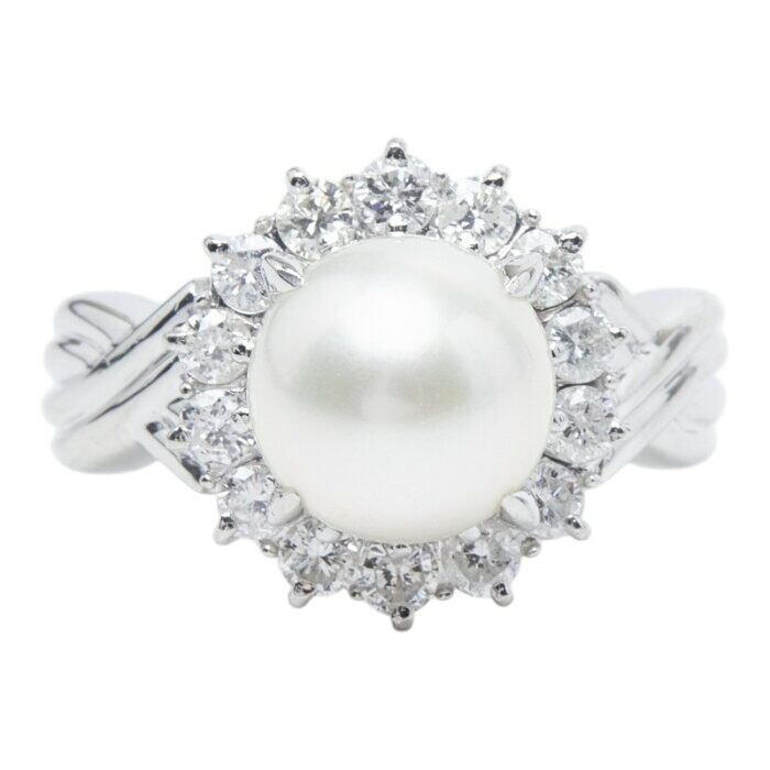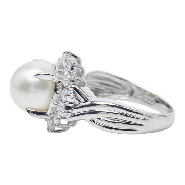 Pt900 プラチナ アコヤパール9.1mm ダイヤ0.71ct フラワーモチーフ リング 指輪 レディース 13号 【中古】