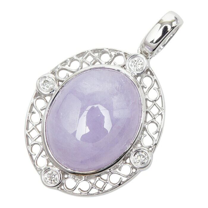 K18WG ホワイトゴールド ラベンダーヒスイ12.21ct ダイヤ0.10ct ペンダント ネックレス レディース 【中古】