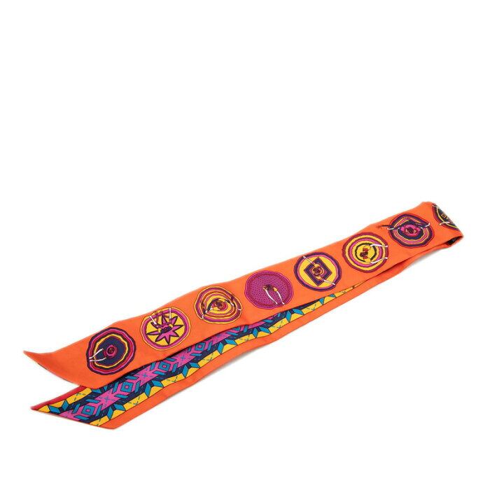 エルメス ツイリー Balles du mexique 美しいメキシコ スカーフ マルチカラー オレンジ シルク レディース HERMES 【中古】