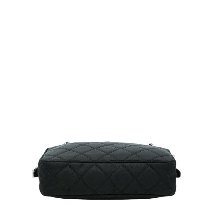 プラダ 三角ロゴプレート チェーン キルティング ハンドバッグ 1BH910 ブラック ナイロン レディース PRADA 【中古】