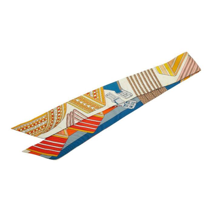 エルメス ツイリー SANGLES EN ZIGZAG ジグザグのサングル スカーフ ベージュ マルチカラー レディース HERMES 【中古】