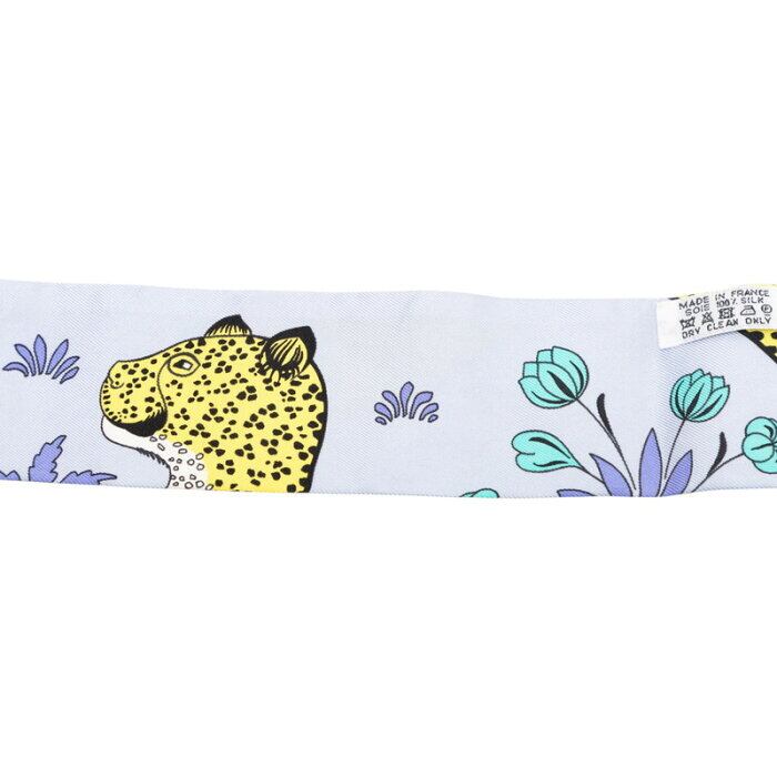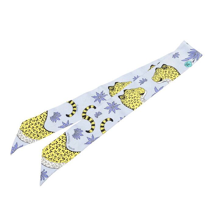 エルメス ツイリー LES LEOPARD レオパード スカーフ ブルー イエロー シルク レディース HERMES 【中古】