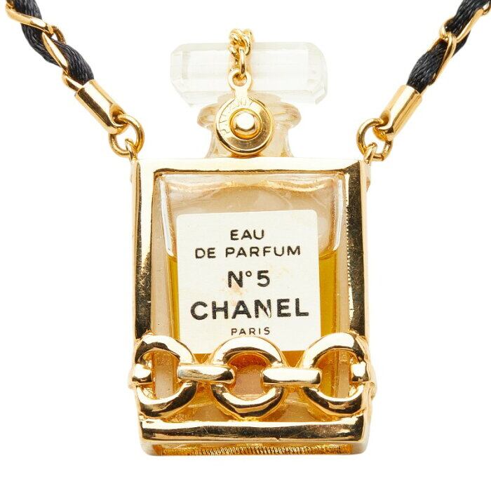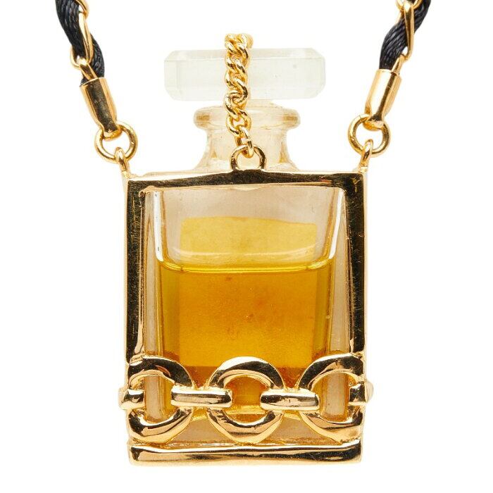 シャネル ヴィンテージ N°5 オードパルファム 香水 ボトル チェーン ペンダント ネックレス ゴールド ブラック クリア メッキ ガラス レディース CHANEL 【中古】