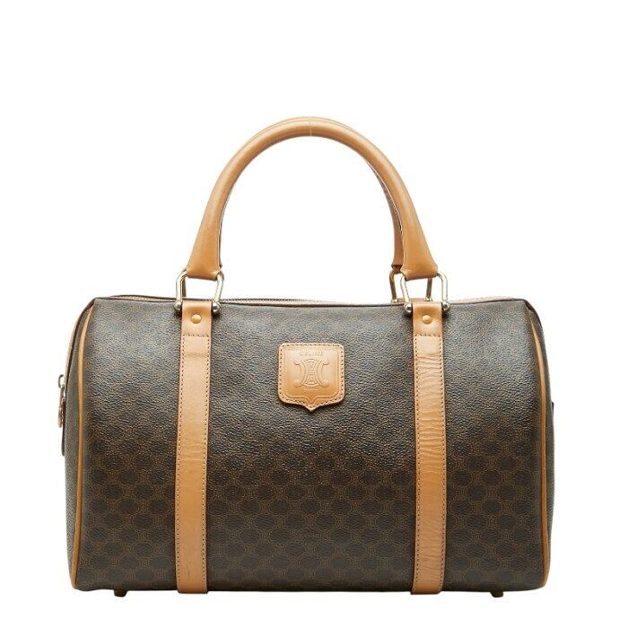 セリーヌ マカダム ボストンバッグ ハンドバッグ ブラウン PVC レザー レディース CELINE 【中古】