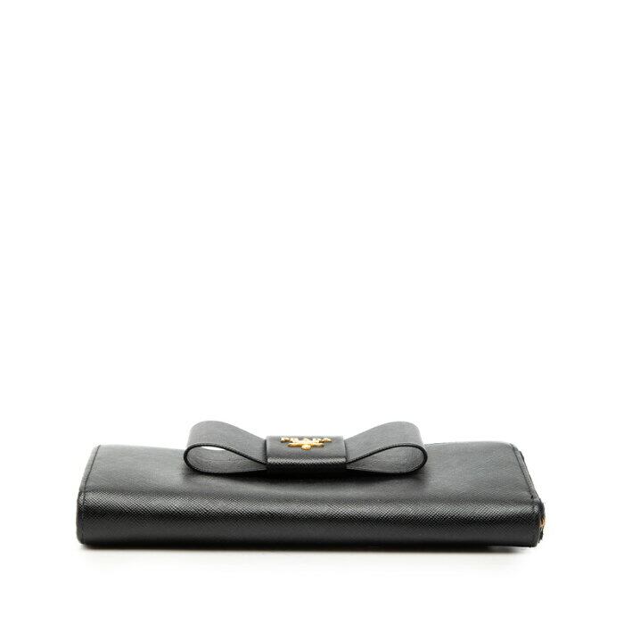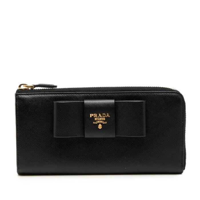 プラダ ロゴ リボン L字ファスナー 長財布 ロングウォレット 1M1183 ネロ ブラック サフィアーノレザー レディース PRADA 【中古】