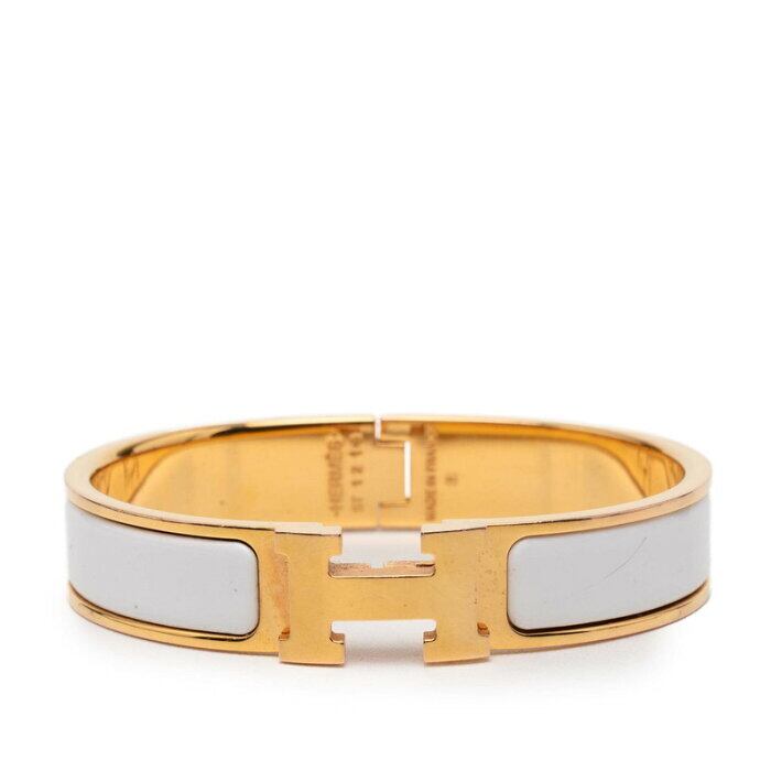 エルメス クリックH ST ロゴ バングル ブレスレット ゴールド ホワイト メッキ エナメル レディース HERMES 【中古】