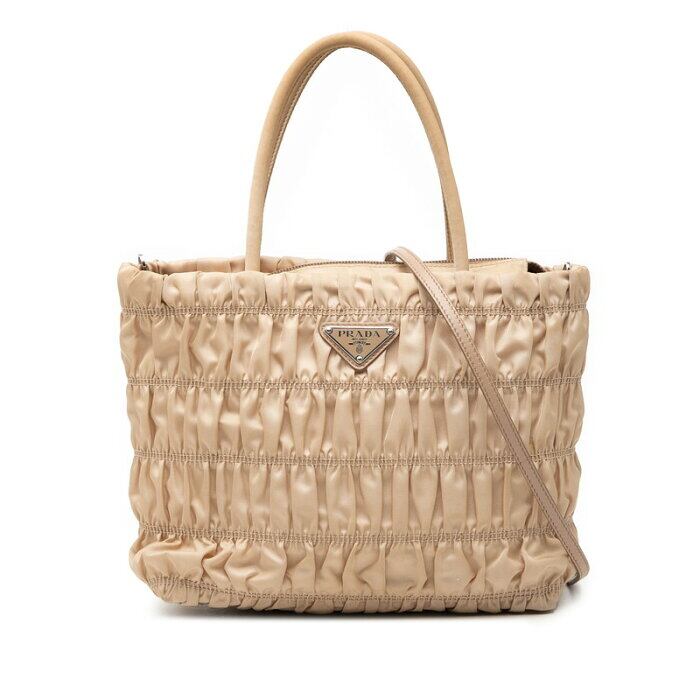 プラダ 三角ロゴプレート ハンドバッグ ショルダーバッグ 2WAY ベージュ ナイロン レディース PRADA 【中古】