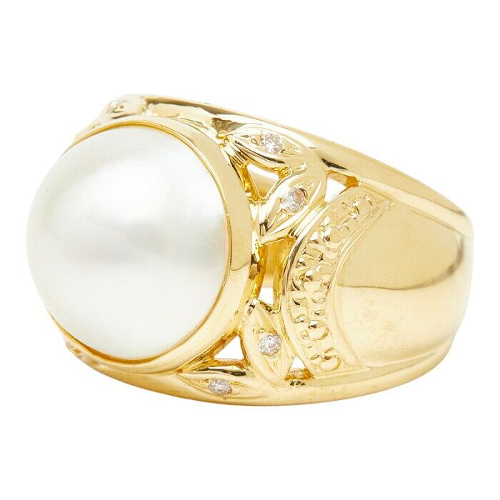 K18YG イエローゴールド マベパール約12mm ダイヤ0.09ct リング 指輪 レディース 11.5号 【中古】