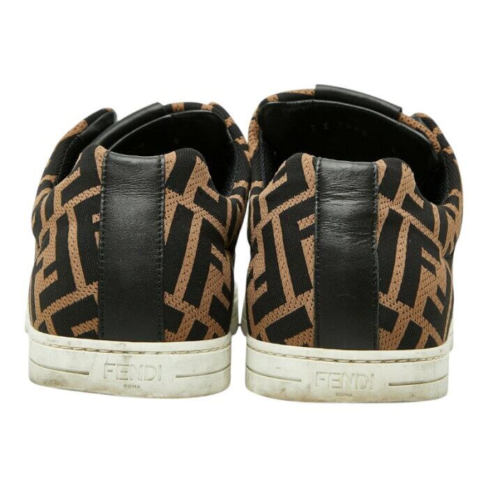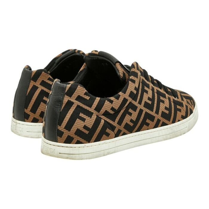 フェンディ ズッカ - スニーカー サイズ8 7E1258 ブラウン ブラック キャンバス レザー メンズ FENDI 【中古】