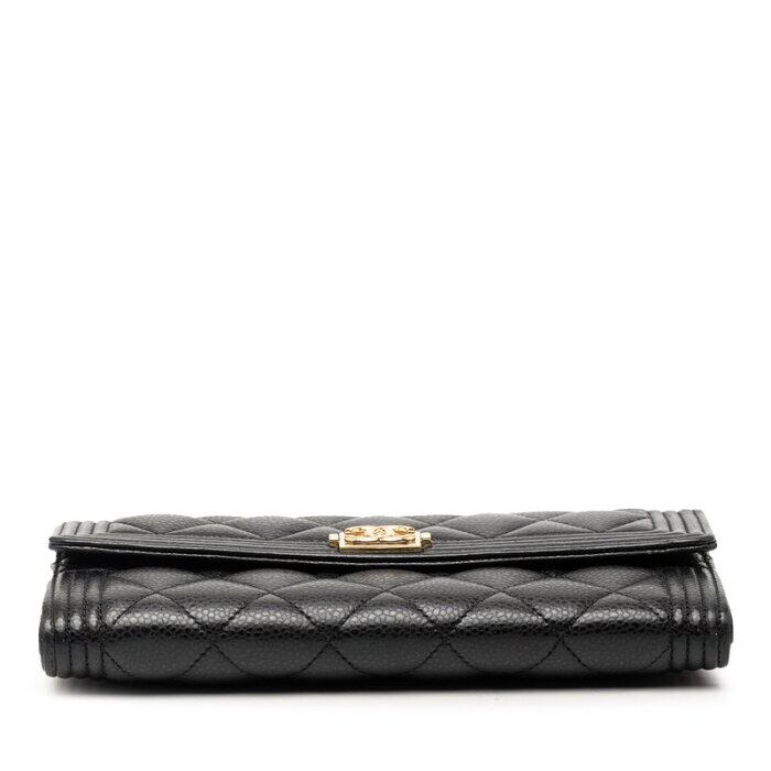 シャネル ココマーク ボーイシャネル 長財布 ロングフラップウォレット A80286 ブラック キャビアスキン レディース CHANEL 【中古】