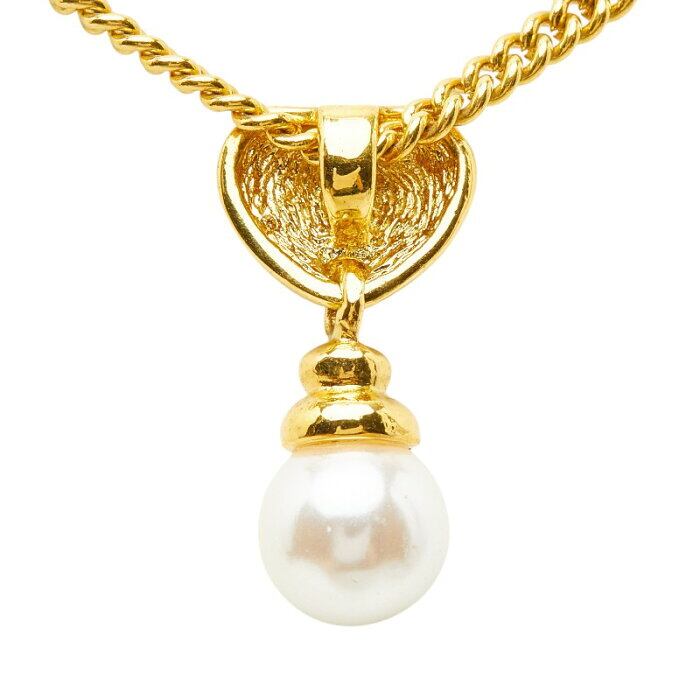 ディオール ハート ペンダント ネックレス ゴールド メッキ フェイクパール レディース Dior 【中古】