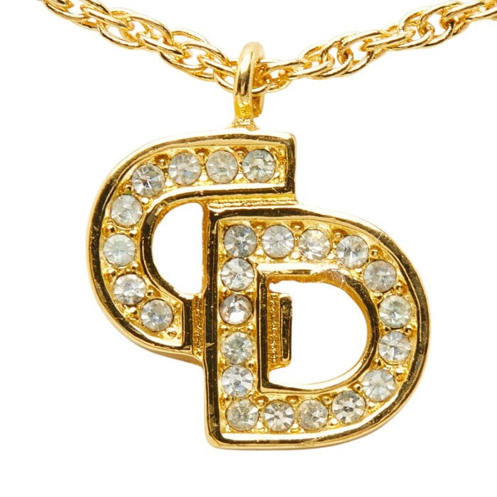 ディオール CDロゴ ラインストーン ネックレス ゴールド メッキ レディース Dior 【中古】