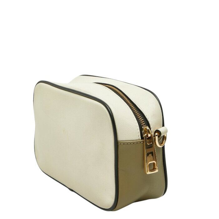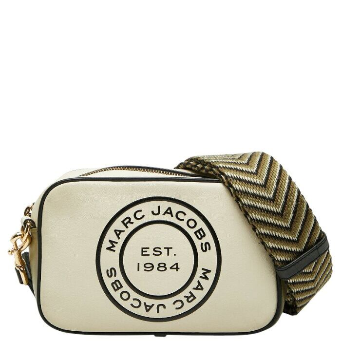 マークジェイコブス 斜め掛け ロゴ ショルダーバッグ カメラバッグ アイボリー カーキ レザー レディース MARC JACOBS 【中古】