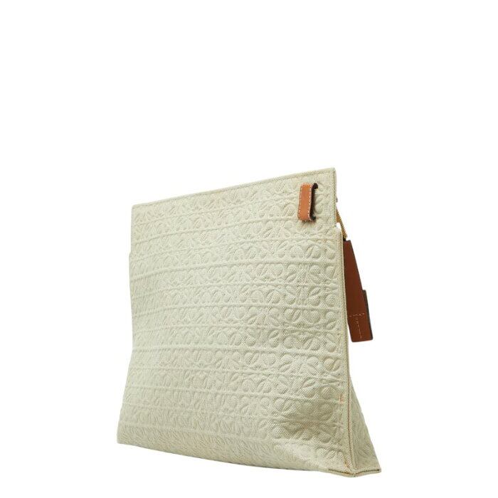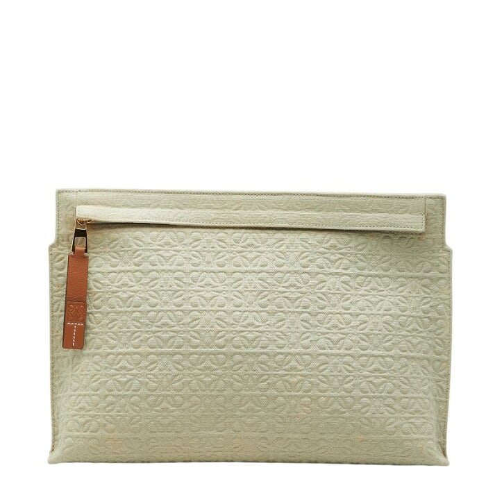 ロエベ リピートアナグラム Tポーチ クラッチバッグ セカンドバッグ ライトグリーン ブラウン キャンバス レザー レディース LOEWE 【中古】