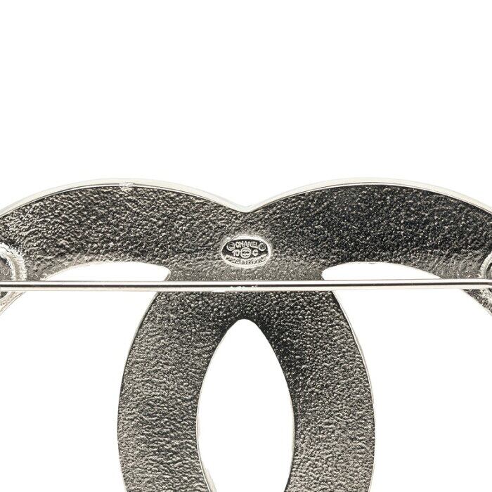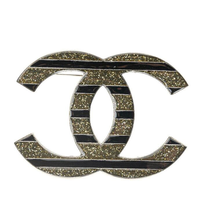 シャネル ココマーク ラメ ボーダー ブローチ シルバー ブラック メタル レディース CHANEL 【中古】