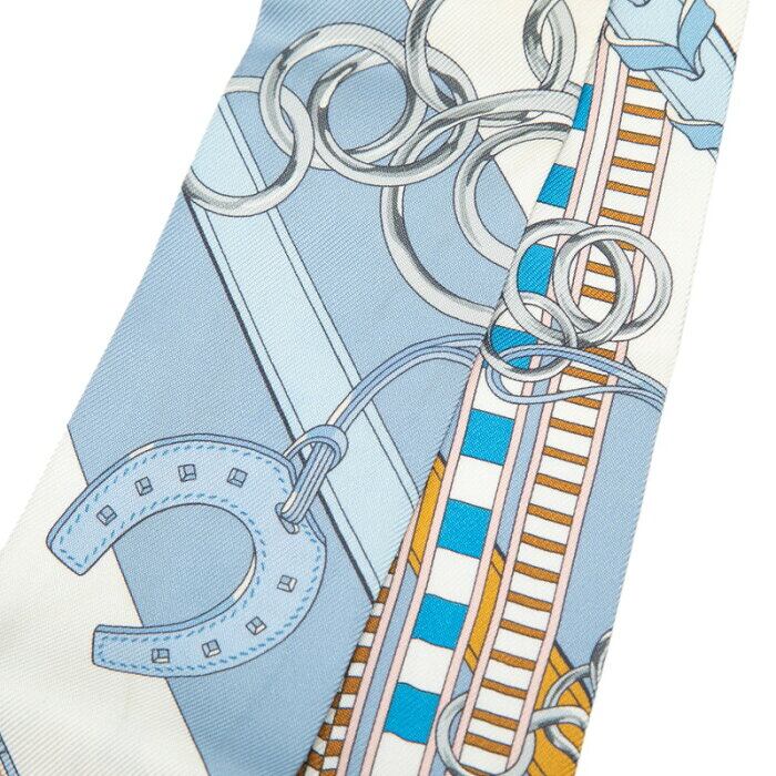 エルメス ツイリー Brides et Gris Gris 馬勒とチャーム スカーフ ブルー ホワイト ベージュ シルク レディース HERMES 【中古】