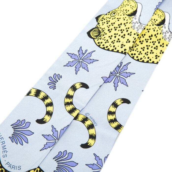 エルメス ツイリー Les Leopards レオパード スカーフ パープル マルチカラー シルク レディース HERMES 【中古】