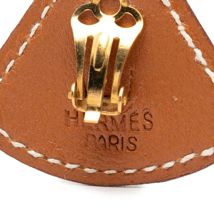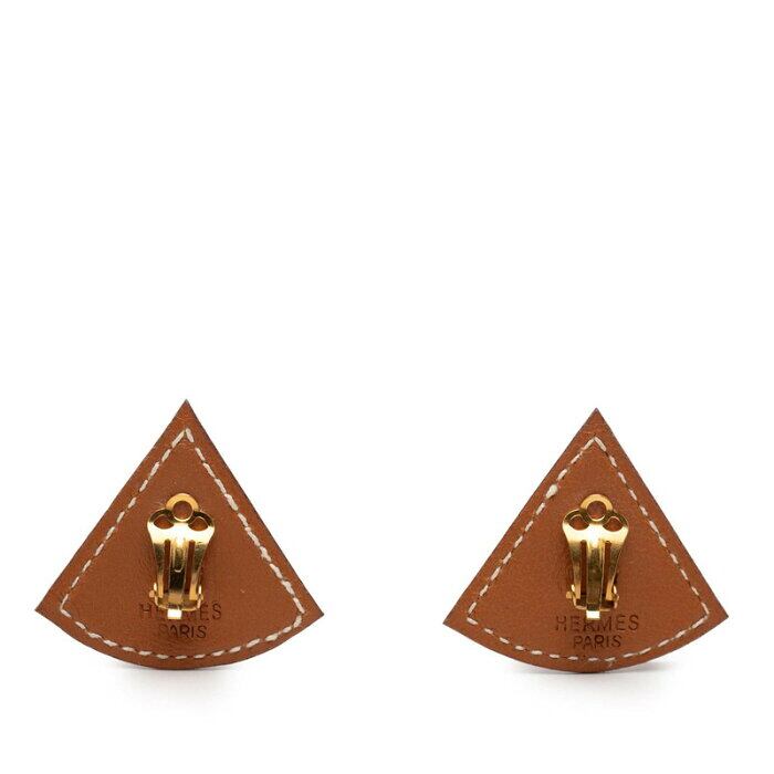 エルメス フォルム トライアングル イヤリング ブラウン レザー メッキ レディース HERMES 【中古】