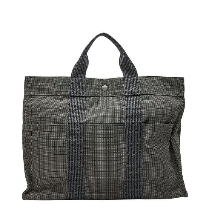 エルメス エールラインGM トートバッグ ハンドバッグ グレー キャンバス メンズ HERMES 【中古】