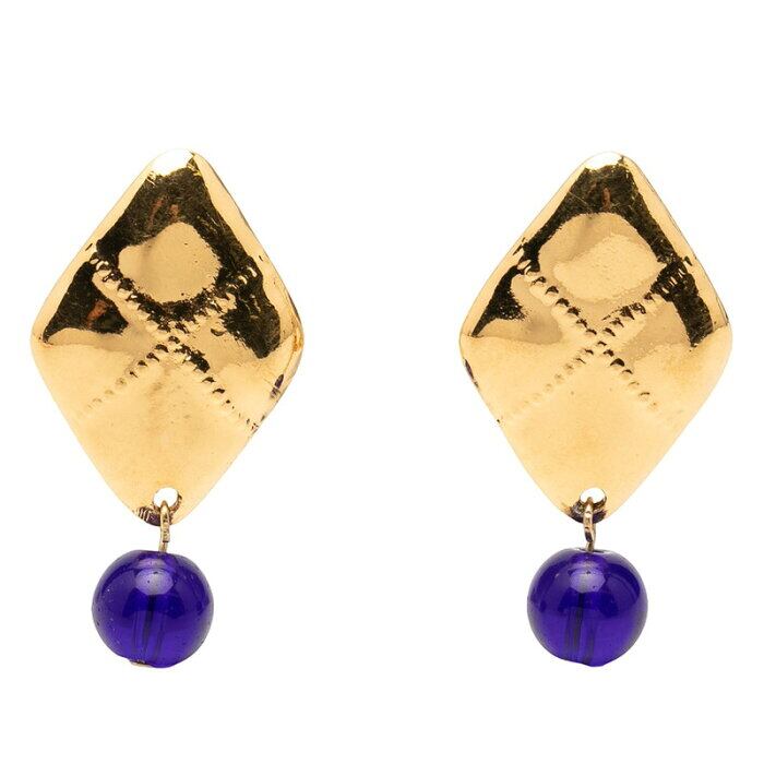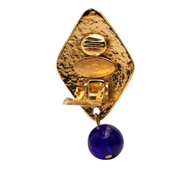 シャネル マトラッセ ヴィンテージ ひし形 イヤリング 94P ブルー ゴールド メッキ カラーストーン レディース CHANEL 【中古】