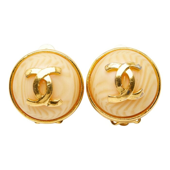 シャネル ココマーク ラウンド サークル ヴィンテージ イヤリング ゴールド ベージュ メッキ レジン レディース CHANEL 【中古】
