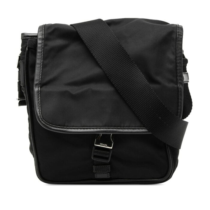 プラダ 三角ロゴプレート 斜め掛け ショルダーバッグ ブラック ナイロン レザー メンズ PRADA 【中古】