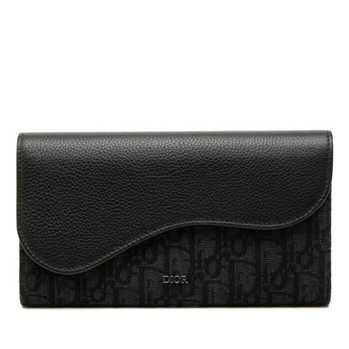 ディオール オブリーク サドル ロングウォレット 長財布 ブラック キャンバス レザー メンズ Dior 【中古】
