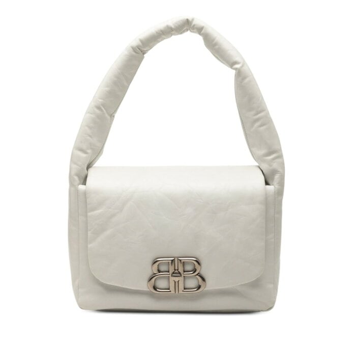 バレンシアガ モナコ BBロゴ ワンショルダー ショルダーバッグ 787896 ホワイト レザー レディース BALENCIAGA 【中古】