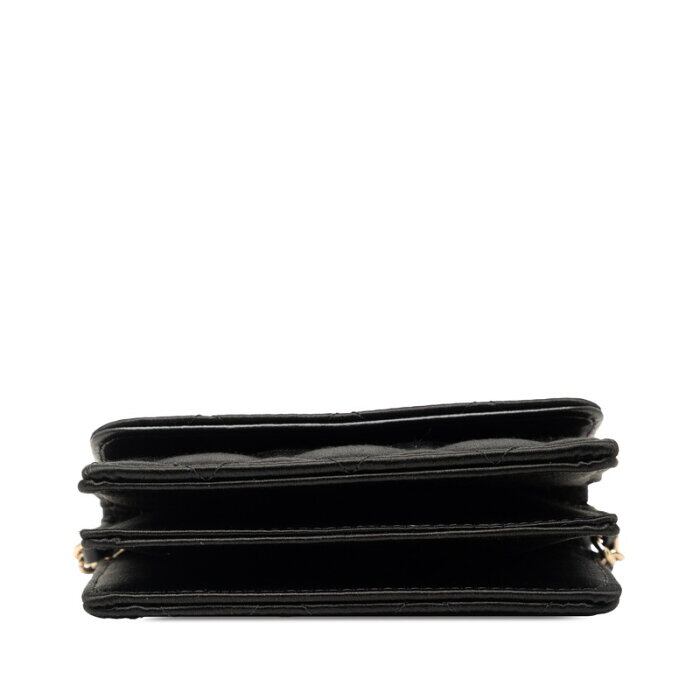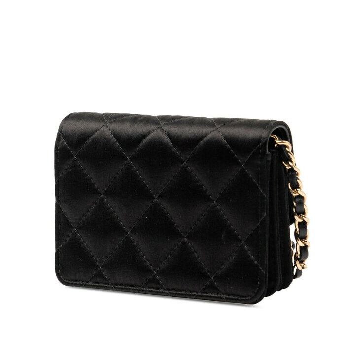 シャネル ココマーク マトラッセ カメリア リボン チェーン ショルダーウォレット ブラック コットン レザー レディース CHANEL 【中古】