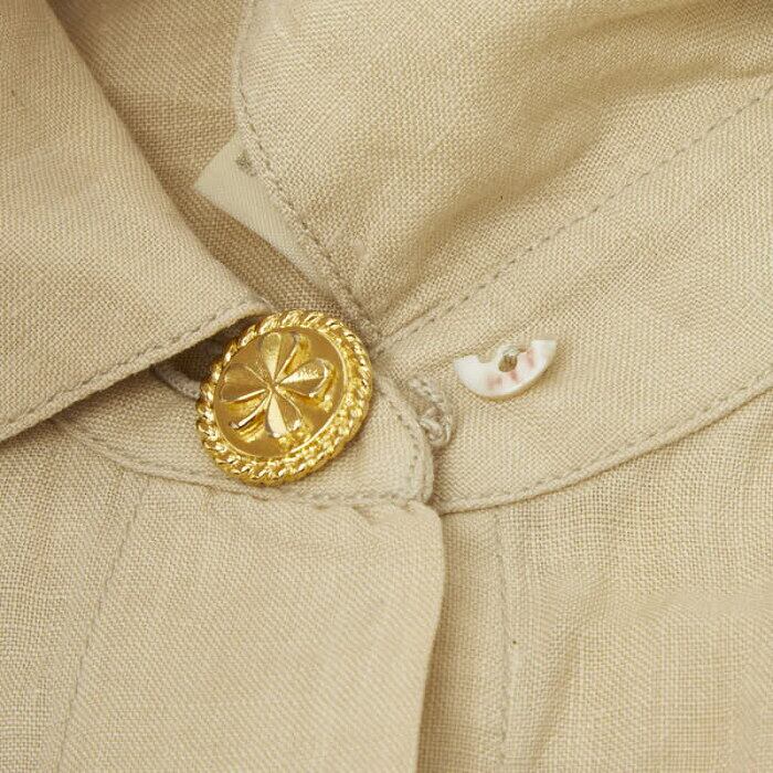 シャネル 金ボタン 半袖シャツ ベージュ リネン レディース CHANEL 【中古】