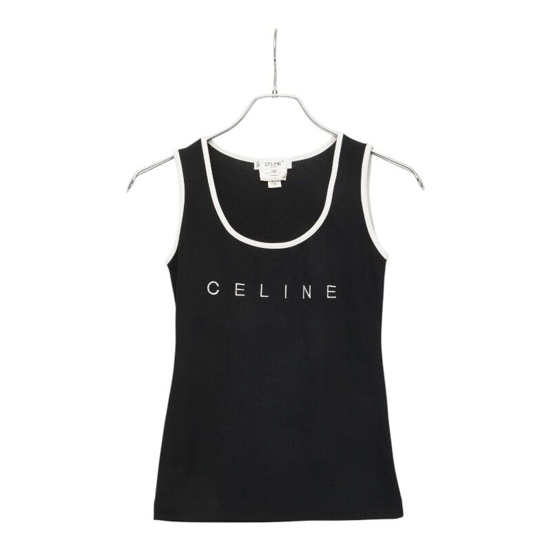 セリーヌ ロゴ タンクトップ キャミソール ノースリーブ サイズ:38 ブラック ホワイト ポリエステル ナイロン レディース CELINE 【中古】