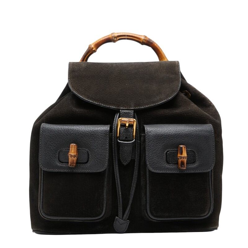グッチ バンブー リュック バックパック 003 2058 0016 ブラック スウェード レザー レディース GUCCI 【中古】