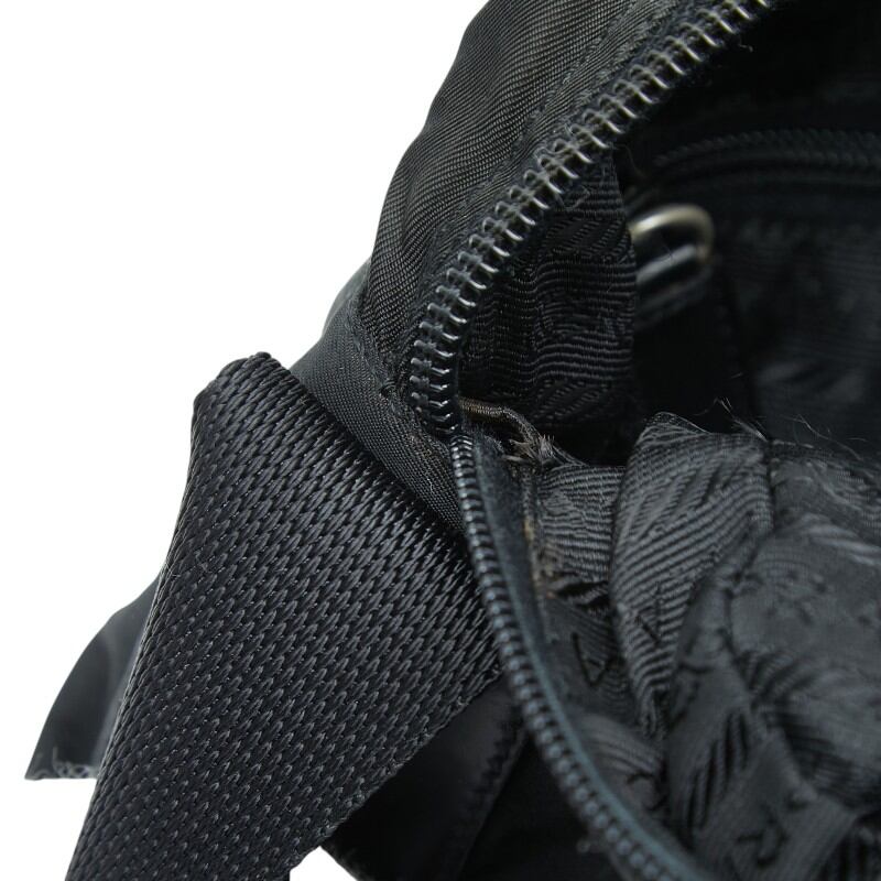プラダ 三角ロゴプレート 斜め掛け ショルダーバッグ ブラック ナイロン レザー レディース PRADA 【中古】