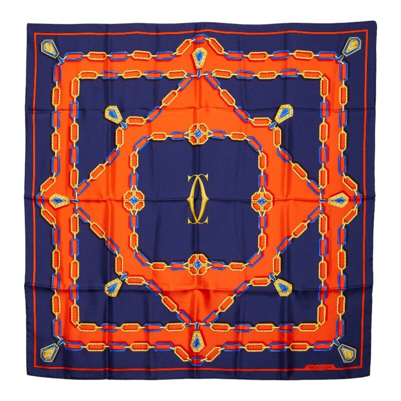 カルティエ ロゴ チェーン ジュエリー モチーフ スカーフ ネイビー レッド レディース CARTIER 【中古】