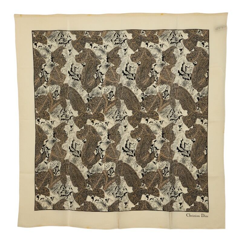 ディオール ペイズリー柄 大判 スカーフ アイボリー グレー ゴールド シルク レディース Dior 【中古】