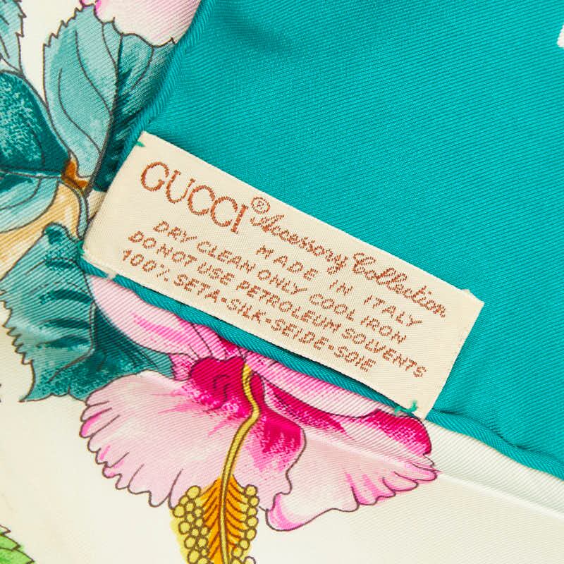 グッチ 果物 花 フルーツ フラワー モチーフ スカーフ グリーン マルチカラー シルク レディース GUCCI 【中古】