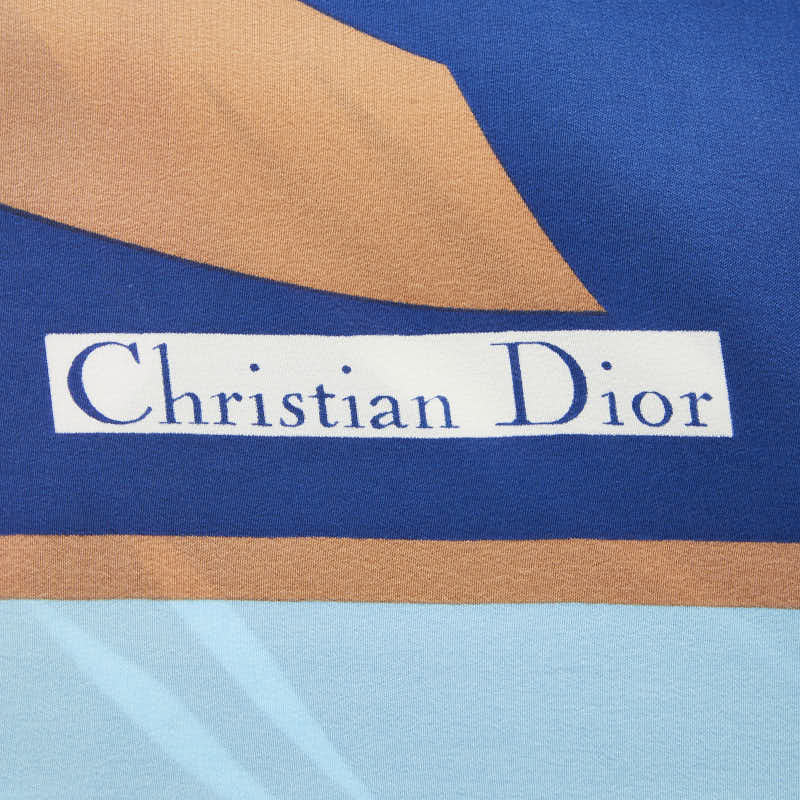 ディオール フラワーモチーフ スカーフ ブルー ベージュ シルク レディース Dior 【中古】