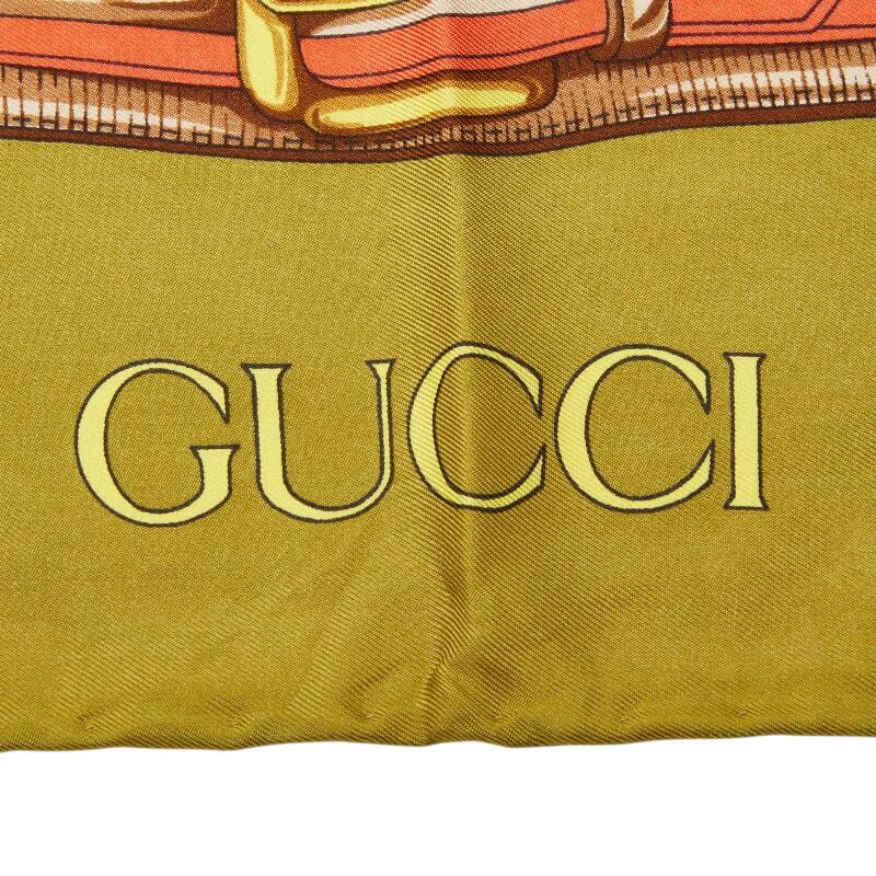 グッチ ベルト チェーン モチーフ スカーフ カーキグリーン マルチカラー シルク レディース GUCCI 【中古】