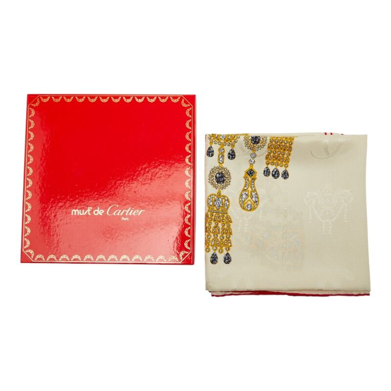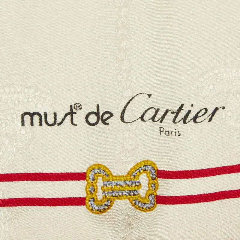 カルティエ リボン ブローチ ジュエリー モチーフ スカーフ ホワイト シルク レディース CARTIER 【中古】
