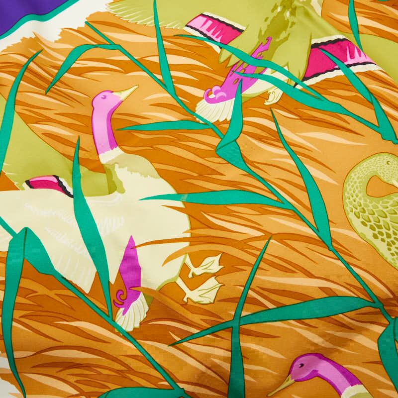 エルメス COLS VERTS マガモ 鴨 鳥 スカーフ パープル 紫 ベージュ シルク レディース HERMES 【中古】