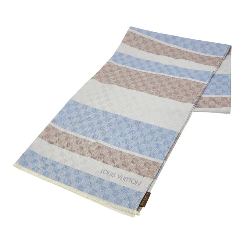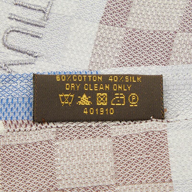 ルイ ヴィトン ダミエ 大判スカーフ ストール 401910 ブラウン ゴールド シルク ウール レディース LOUIS VUITTON 【中古】