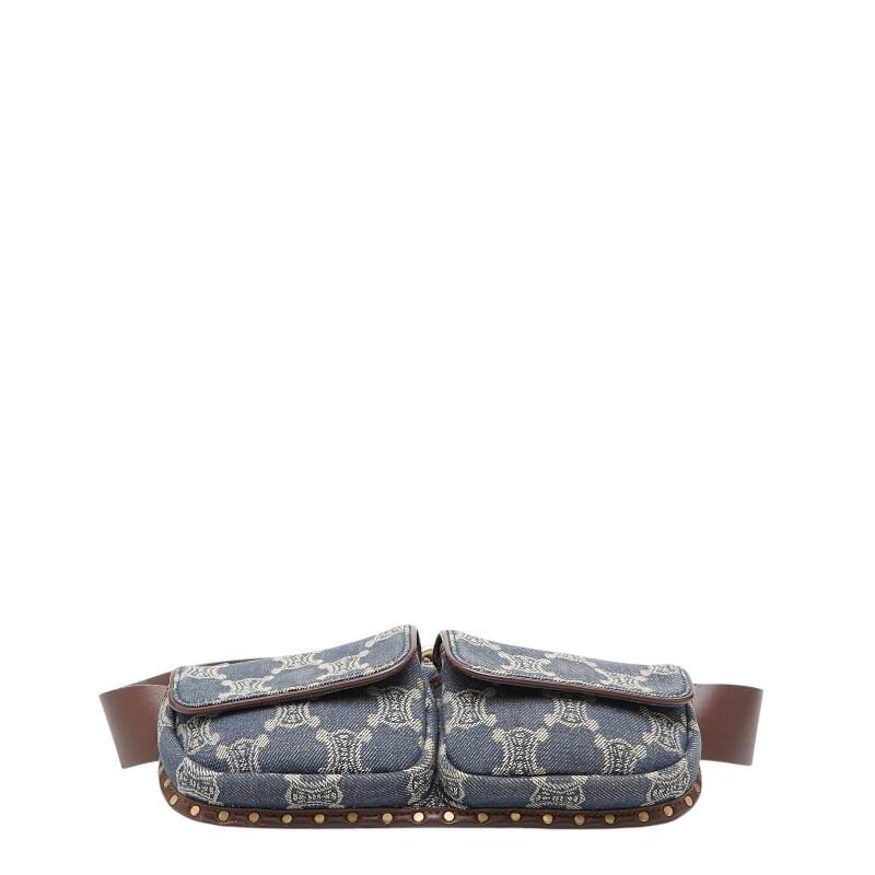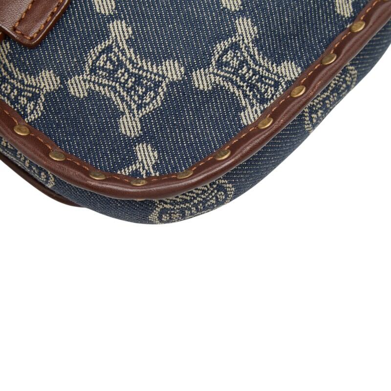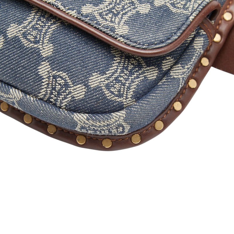 セリーヌ パリマカダム ボディバッグ ウエストポーチ ブルー ブラウン デニム レザー レディース CELINE 【中古】